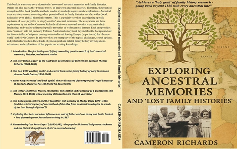 This book is a treasure trove of particular ‘recovered’ ancestral memories and family histories. The important thing is that others can also access the ‘treasure troves’ of their own ancestral histories – and hopefully the practical examples of this book (and the methods used in it) can help inspire similar explorations. Ancestral trees are always more interesting and relevant when grounded both in family histories and also wider (i.e. local, national or even global) historical contexts. This is especially so when investigating specific mysteries of ‘lost, forgotten or simply omitted’ ancestral memories. The essays here are those explorations by the author Cameron Richards of his own ancestral tree that were particularly fascinating, and yet also addressed specific mysteries of wider general interest. Each one provides some ‘window’ into not just early Colonial Australian history (and beyond) but the backgrounds of the diverse influx of migrants coming to Australia and leaving Europe (in particular) for ‘the new world’ in the 19th Century. In this way they are exemplary of the typical challenges, search options, and potential rewards in these kinds of genealogical and related family history investigations, adventures, and explorations of the gaps in our existing knowledge.