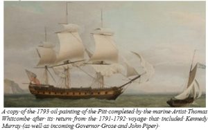 The conditions on the subsequent ‘eight and half month’ voyage to Sydney Cove (arriving 14 Feb 1792) were perhaps even more ‘appalling’ than the English prison hulks. Twenty-nine out of the 404 convicts on board died on this trip. As well as having John Piper as part of the escort crew on board, on this voyage The Pitt had on board the new incoming governor Francis Grose (who was to replace Australia’s first governor Arthur Philip).